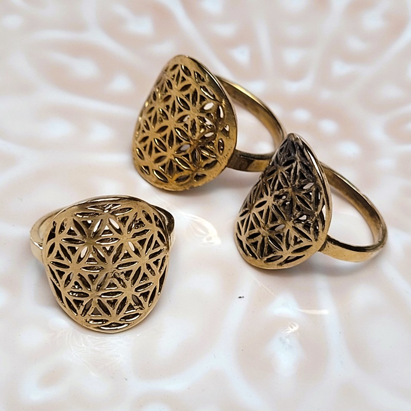 Bague FLEUR de VIE dorée , le set est composé de 3 bagues  . Ces bagues sont Garanties sans nickel.
