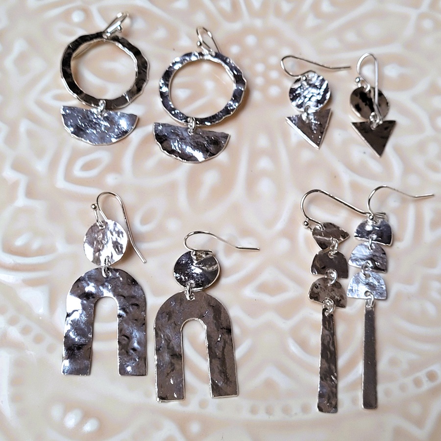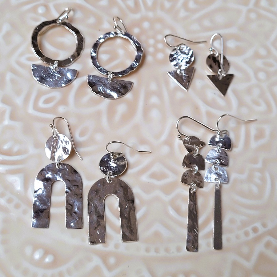 Boucle d’oreille en métal martelé et argenté
