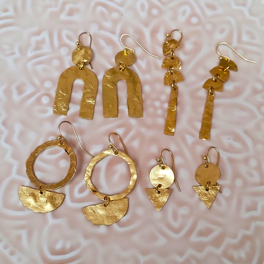 Boucle d’oreille en métal martelé et doré