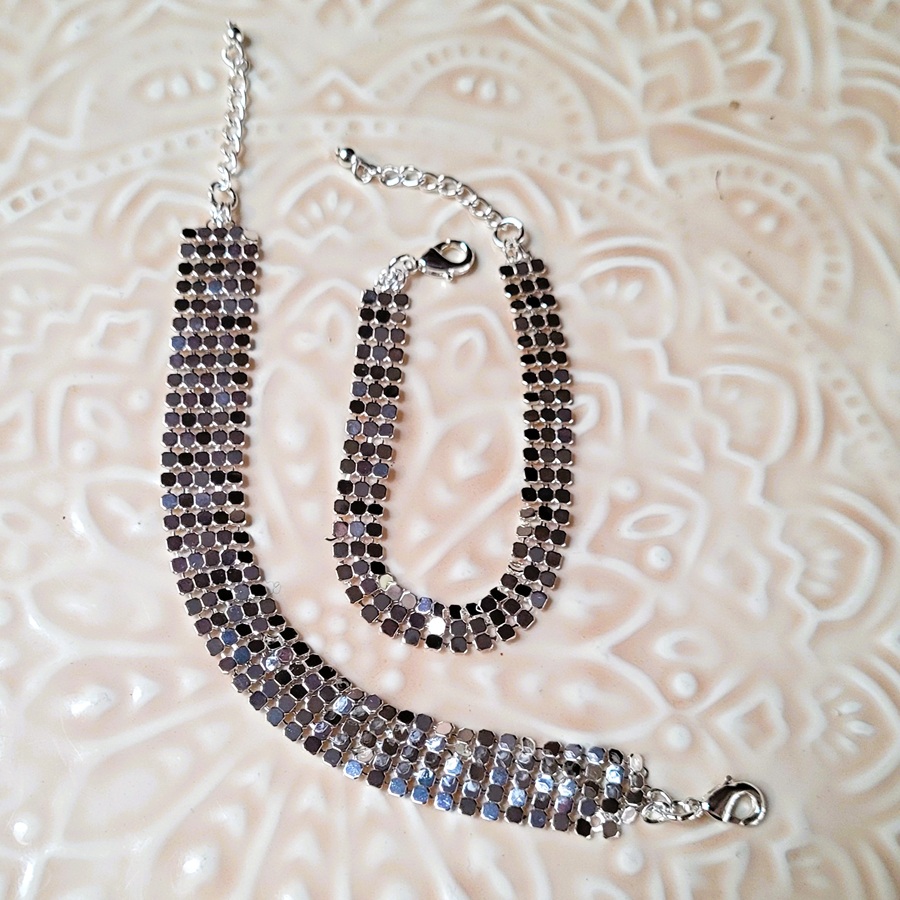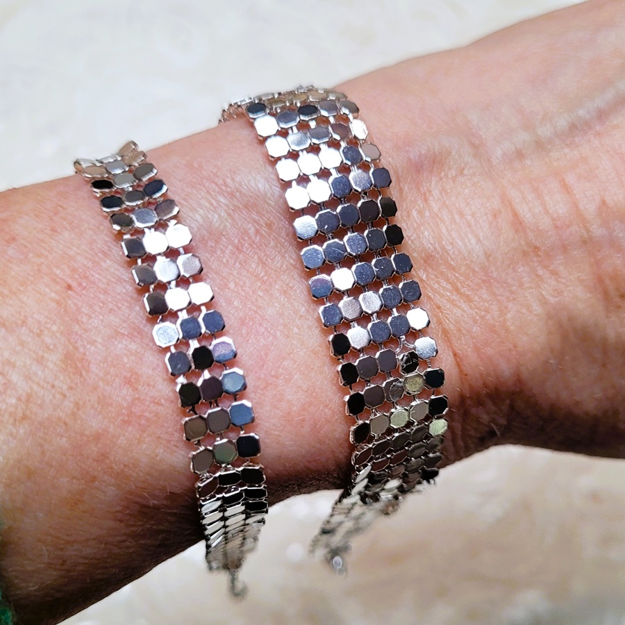 Le bracelet Ava plaqué argent « style liquid silver » est un set de 2 pièces souples et raffinées : un petit (1 cm) et un moyen (2 cm), disponibles en doré . Très fluide, très raffiné, il se porte seul ou assorti au collier Ava.
