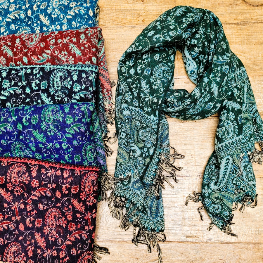 Le châle du Népal Mango est en viscose (laine végétale) avec un tissage épais et large, il séduit par son joli motif de petites mangues qui lui donne une touche originale et chaleureuse. Ses couleurs chaudes d’hiver apportent immédiatement du style à une tenue tout en restant faciles à associer. Grâce à son format généreux, il se porte aussi bien autour du cou qu’en châle sur les épaules pour un effet confortable et enveloppant.