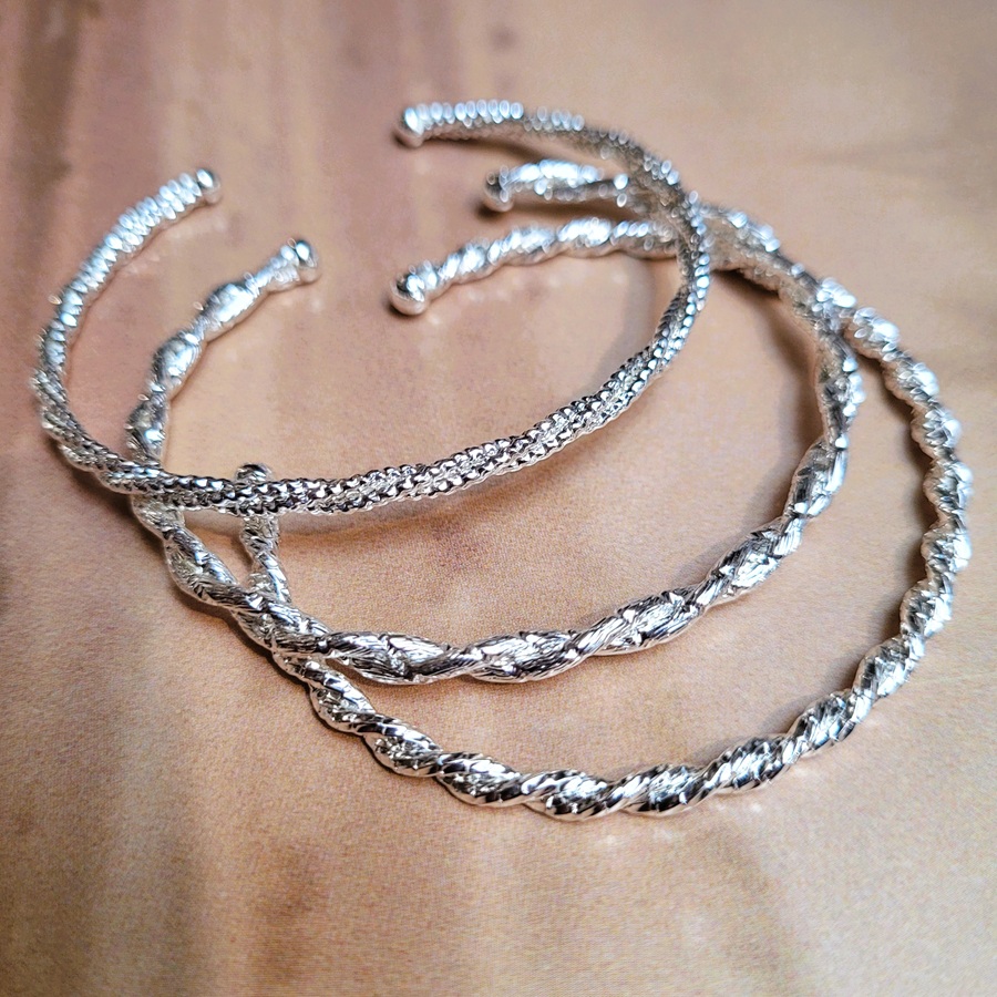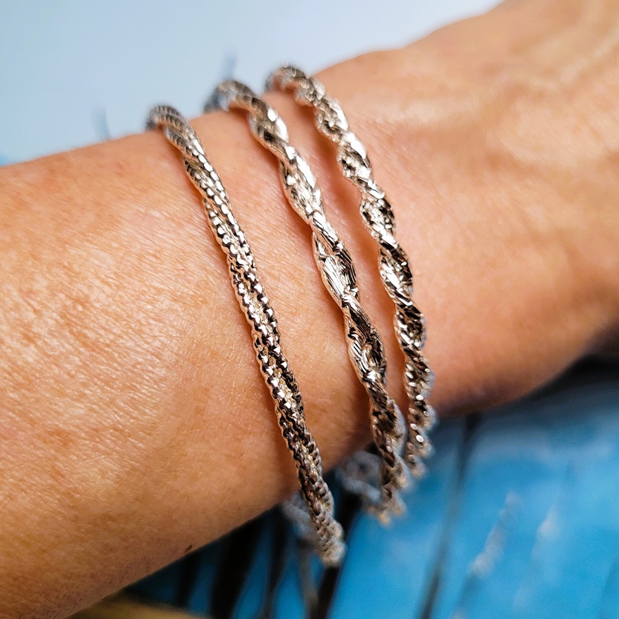 La finition argentée apporte une touche moderne et lumineuse, tandis que la forme demi-jonc assure un maintien confortable au poignet. Ces bracelets fantaisie tressés s’intègrent facilement aux collections de bijoux tendance et répondent aux attentes d’une clientèle à la recherche de pièces actuelles et faciles à porter.