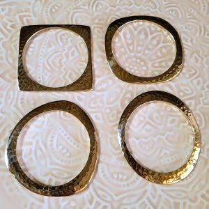 Joncs martelés dorés plats et asymétriques Charlie , vendus en set de 4 bracelets différents , Garantis sans nickel